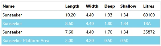 Sunseeker Pool Sizes